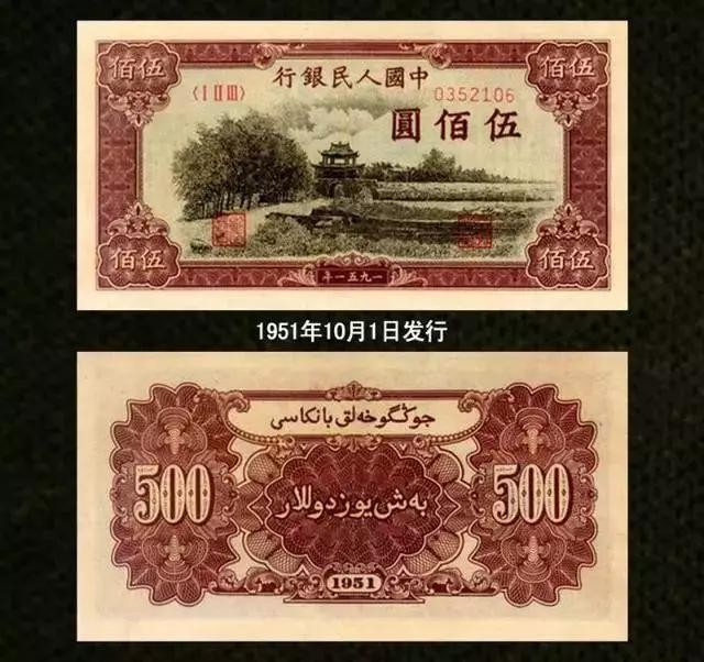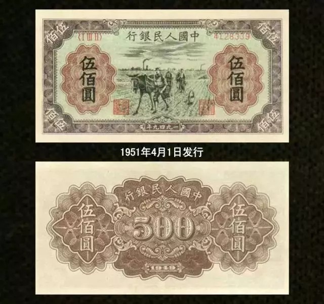 我国从1949年发行过的五百元纸币都是啥样?你见过吗?这四个版面是1949年发现的,下面是1951年发行的五百元钞票,设计很精美。