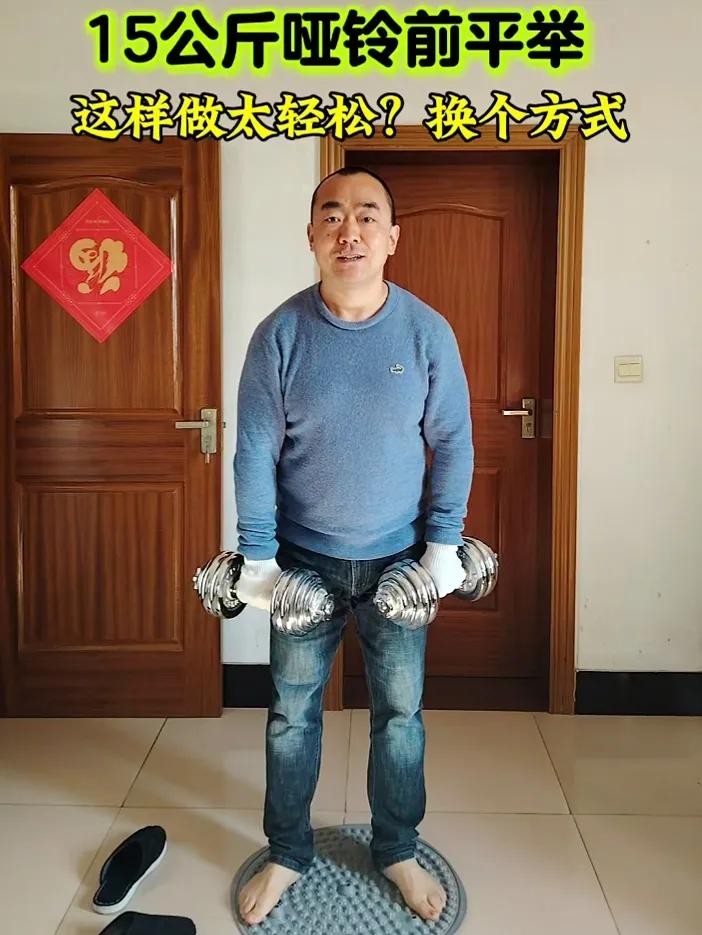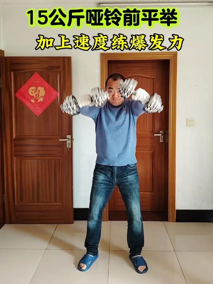 #发优质内容享分成#今天尝试了不一样的哑铃前平举。以往做哑铃前平举主要是用15公斤哑铃做力量训练,整个过程是一个慢举慢放的训练。