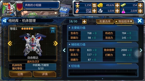 对高人气机体的欲望是所有人都会有的,自由敢达绝对是其中一个。获取方式是通过活动获取,意思就是啥时候能弄到,完全就是看运营商的心情如何~坑!行吧,不过看看机体属性呢,也就那样了,攻击力算准一流,血条也是准一流,那他为啥好呢?第一,得不到当然就是好的,活动不来,谁都拿不到。第二,技能绝对炫酷吊炸天啊~五炮齐发的特效做的给个LV MAX评价了。刷图的利器,单体伤害还是可以接受,再加一个辅助技能,可攻可受,值得入手的。自由我是重推蓝星的,因为技能自带DEBUFF的话,简直就是神器啊,一扫一大片,黄星不适合发挥它的能力。如果太壕,拿到更好地,摆在机库里当吉祥物都脸上有光。