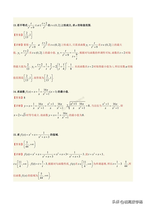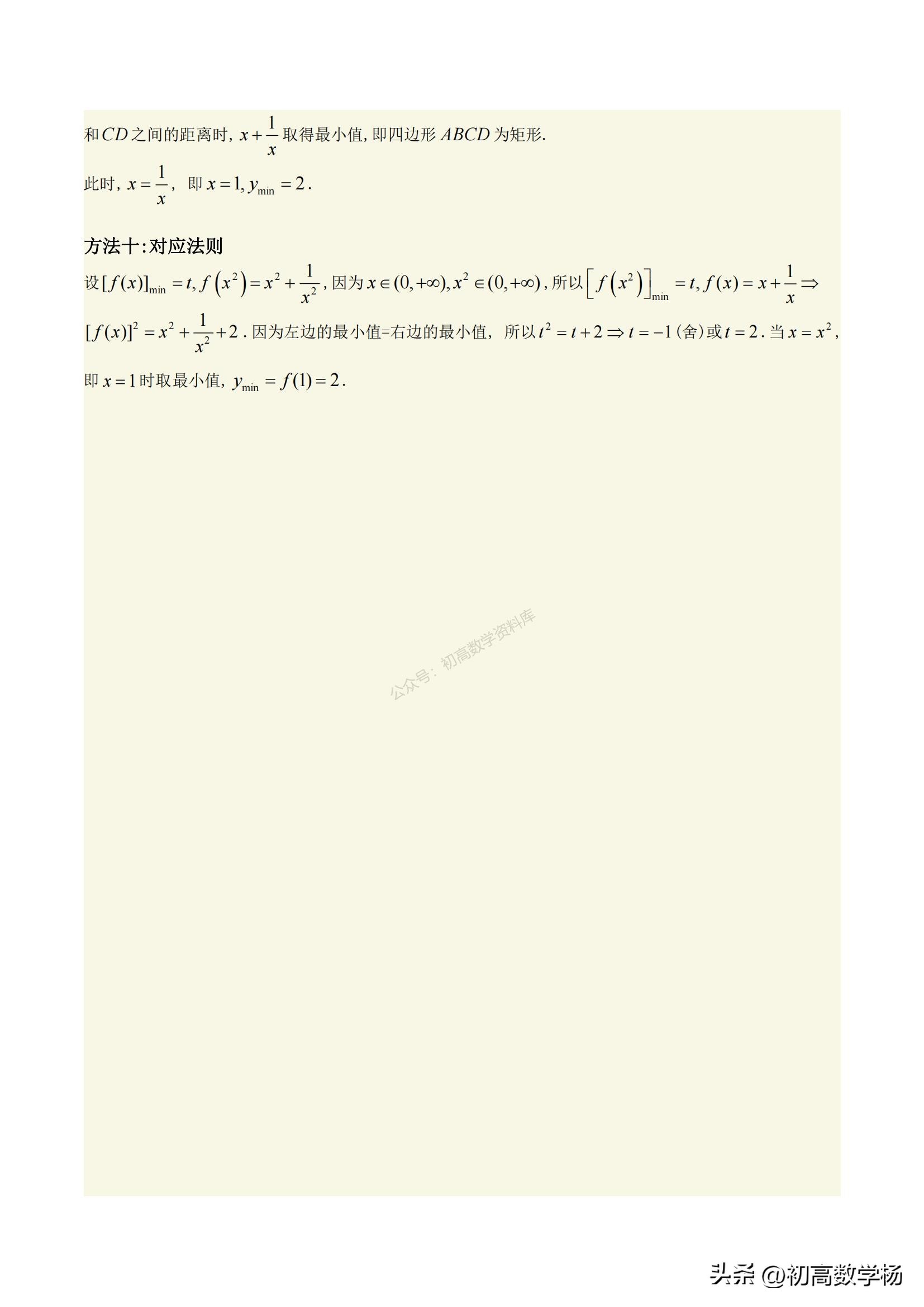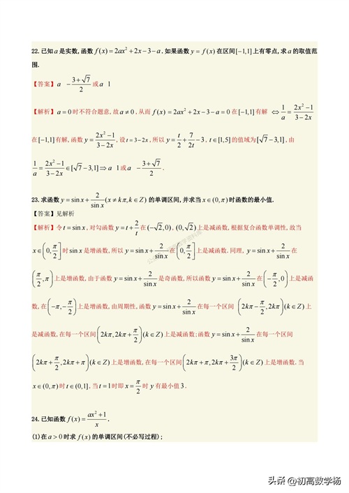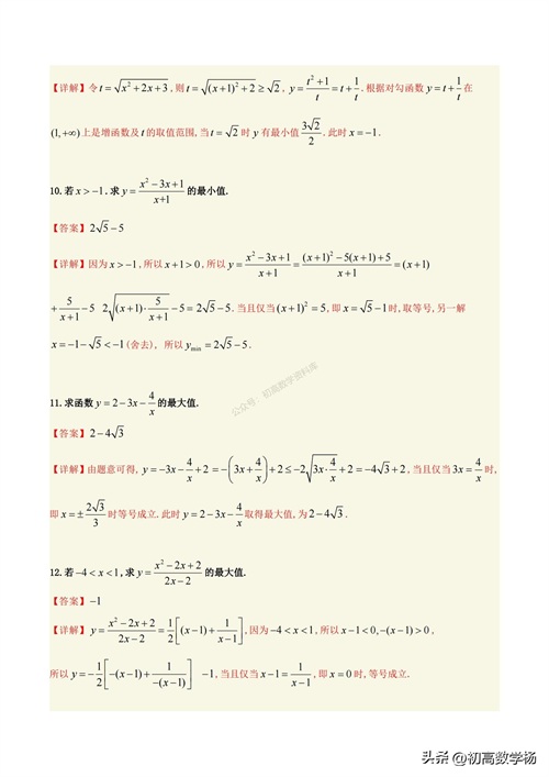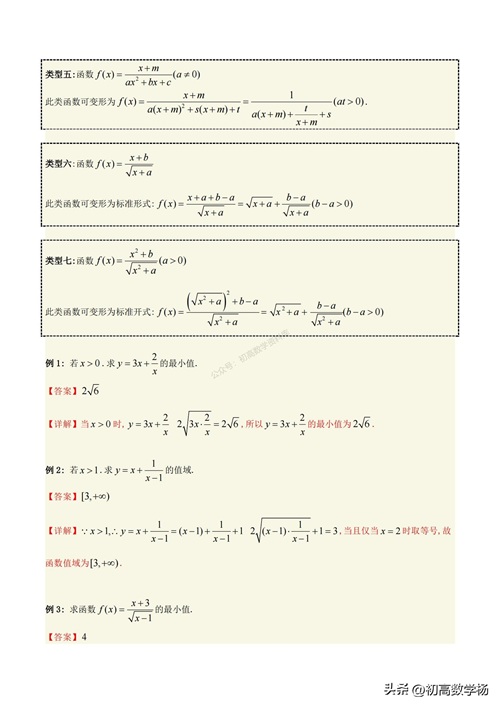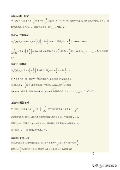 高一数学培优——对勾函数求最值10种方法总结