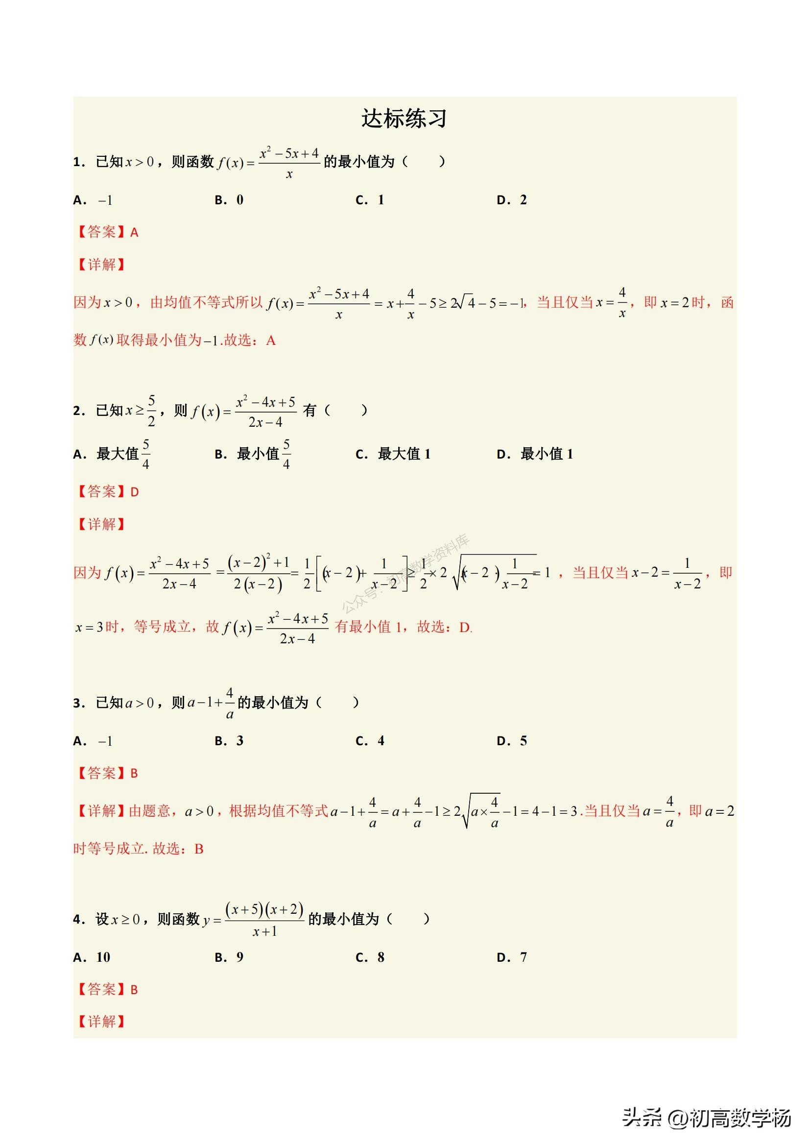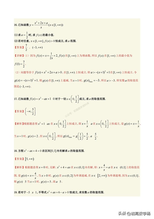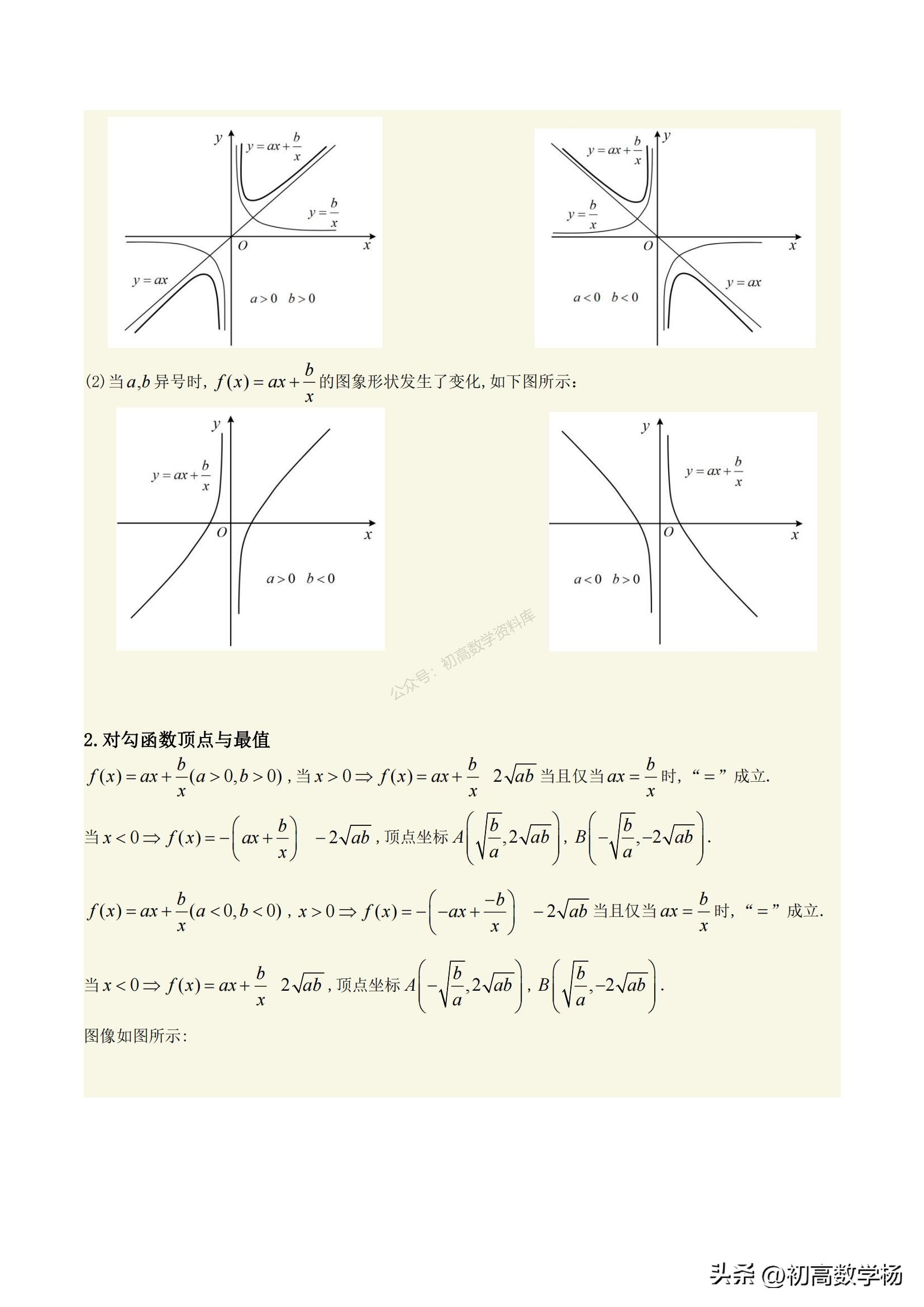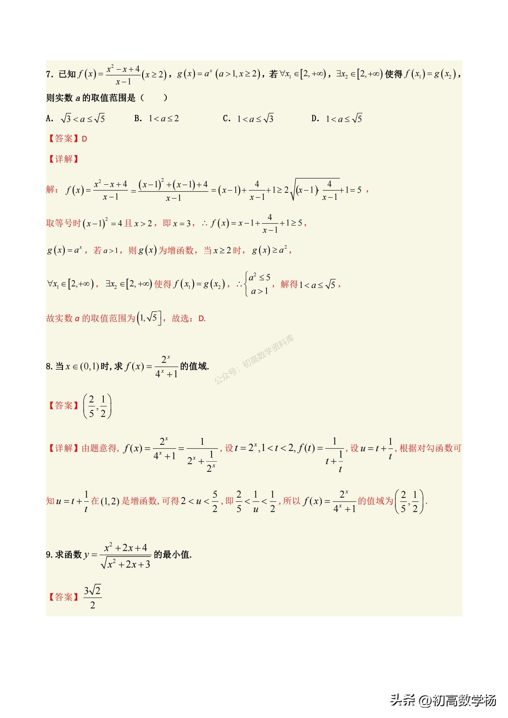 高一数学培优——对勾函数求最值10种方法总结