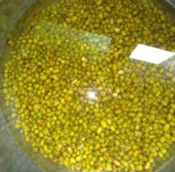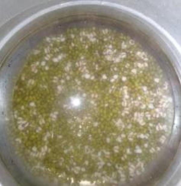 第2步,绿豆洗干净,提前浸泡一夜。