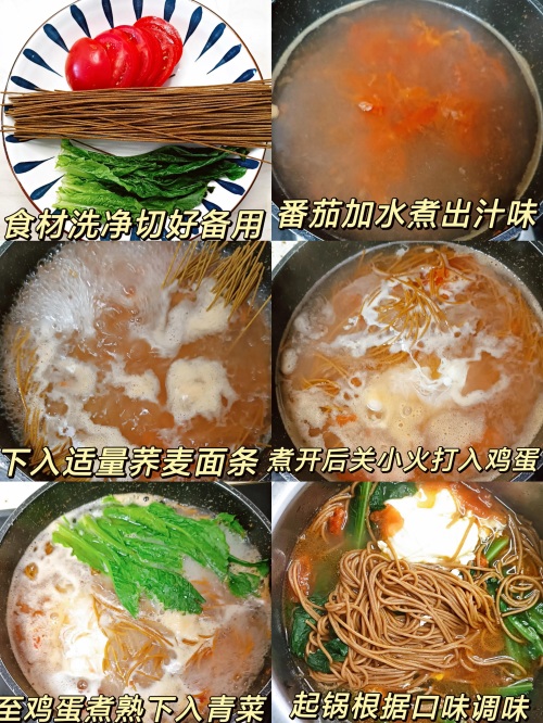 番茄,青菜,荞面,鸡蛋