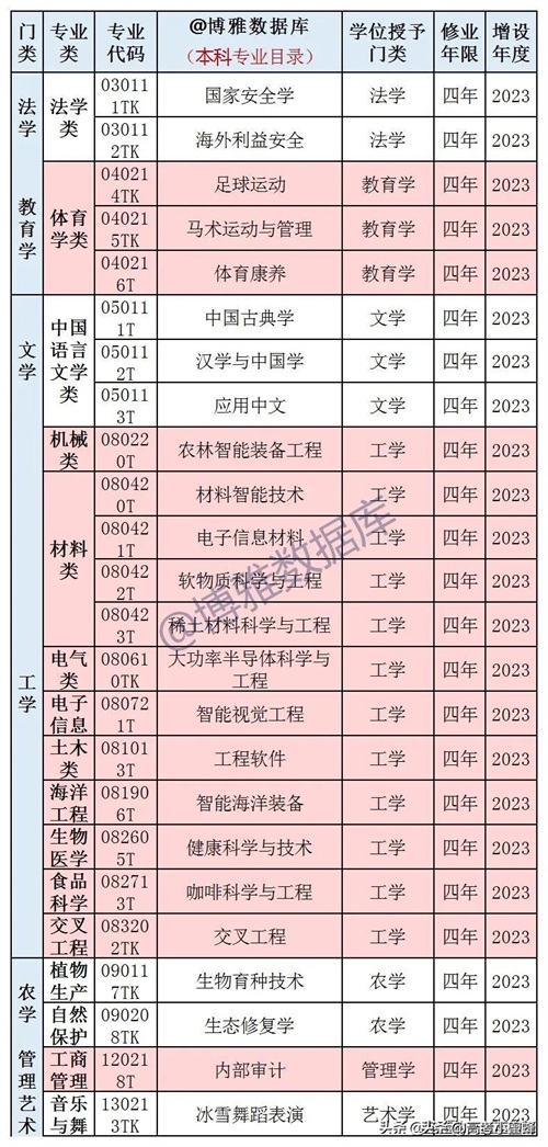 新增专业目录如下: