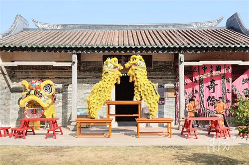 阳西搂大头狗属南狮流派,经过数百年的本土化演变,成为阳西独特的传统民俗活动。虽在外形上与舞狮相似,但因表演时模仿狗的动作神态,被称为“大头狗”,距今已有600多年历史,于2022年入选广东省阳江市第六批市级非物质文化遗产名录,先后获得“马来西亚马六甲rickyau国际高桩舞狮邀请赛”和“中国广州龙狮文化节”金奖等殊荣,成为阳西乃至中国的一张闪亮名片。