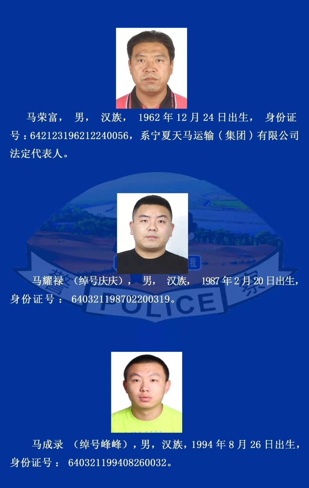 【新关注】宁夏警方征集马荣富等人违法犯罪线索!举报有奖励