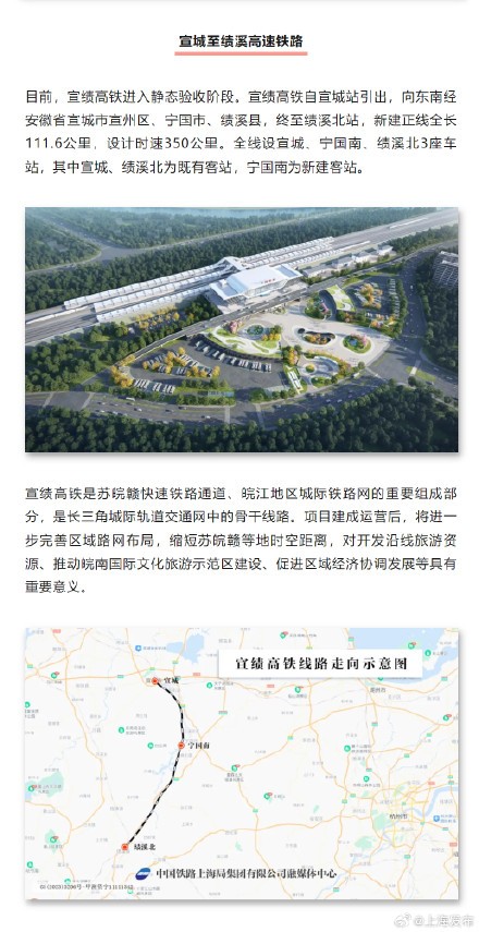 @长三角铁路 介绍,近日,长三角地区多条高铁项目建设全面开启加速度。除了4月26日开通运营的池州至黄山高铁外,2024年计划开通管内杭州至温州高速铁路、宣城至绩溪高速铁路、上海经苏州至湖州高速铁路等多条铁路项目。