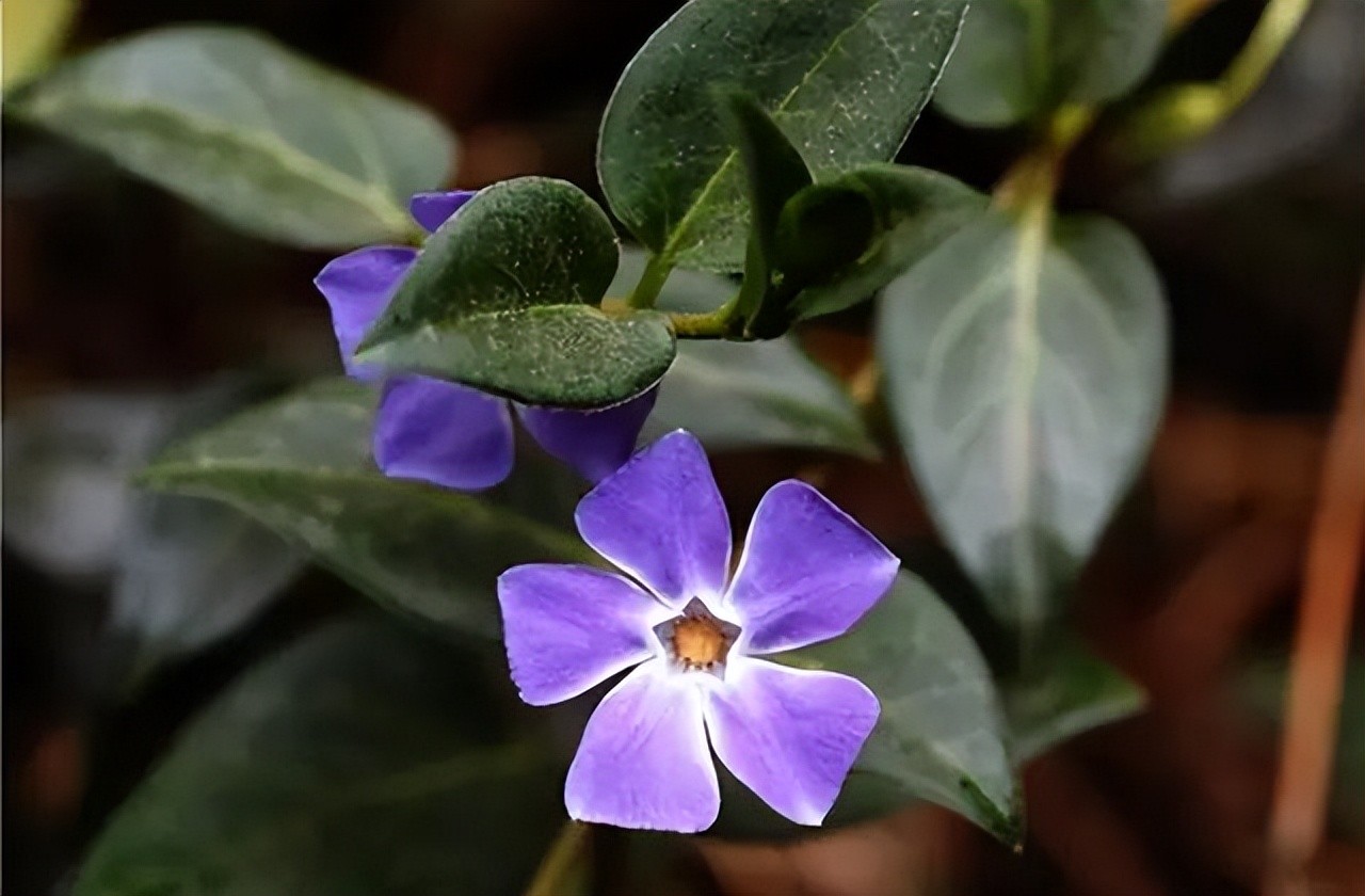 夹竹桃科蔓长春花属,别名蔓长春花。