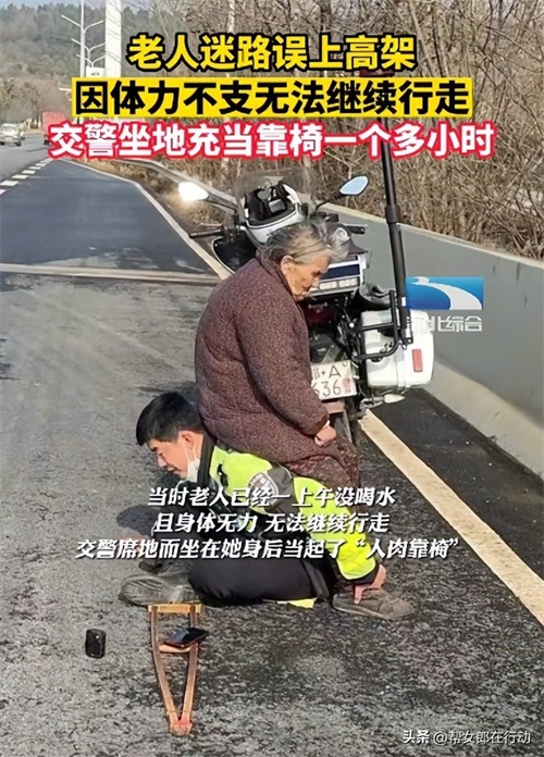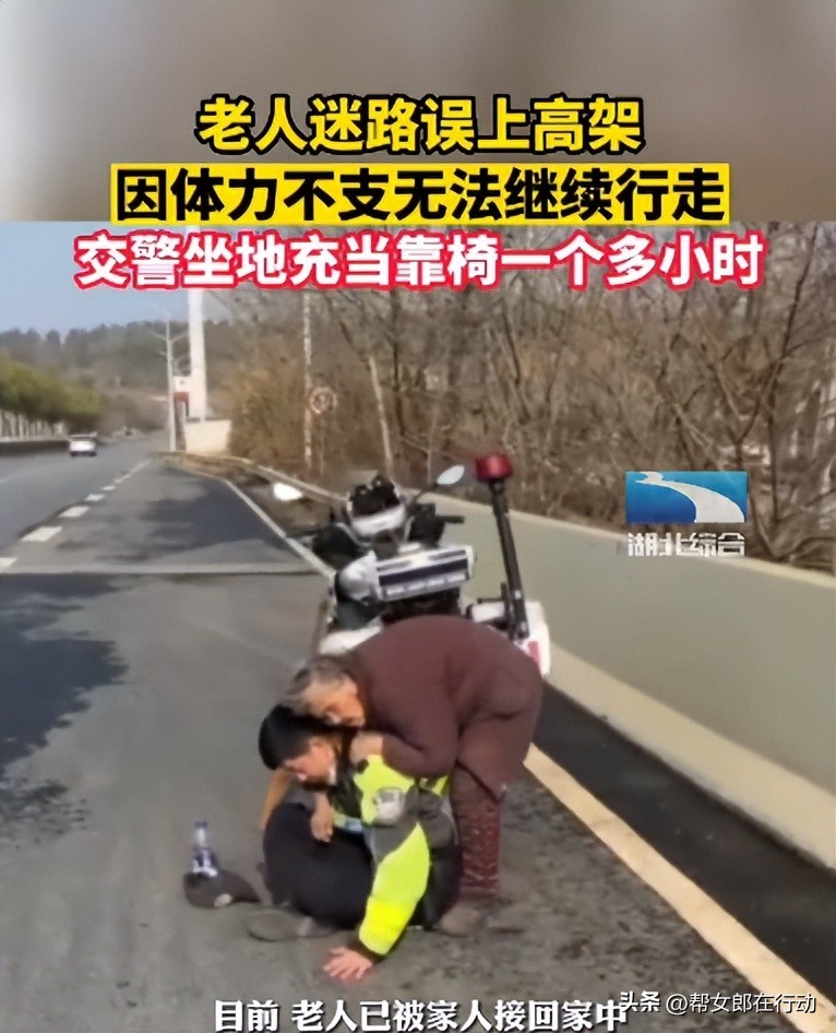 老人迷路误上高架,交警坐地上充当“人肉靠椅”,让老人靠坐在自己背上休息