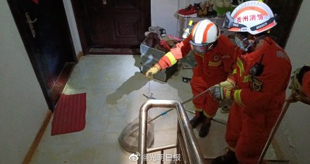 近日,贵州省黔西南州望谟县一居民家中发现一条凶猛大蛇。消防员抵达现场后发现,这条蛇躲在4楼过道的鞋柜后,经确认为国家二级保护动物眼镜王蛇。做好个人防护后,两名消防员与这条长蛇展开了“斗争”。由于蛇身巨大,加之抓捕过程中蛇不断“反抗”,给救援工作增加了一定的难度。最终,蛇被消防队员控制下来并装进袋子里。在撤离现场后,消防员驱车将其送到野外放生。(光明日报全媒体记者 吕慎 陈冠合 图片来源 贵州消防)