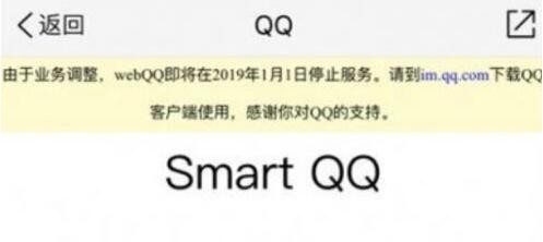 12月12日消息,腾讯QQ网页版官网今日发布公告称,由于业务调整,WebQQ即将在2019年1月1日停止服务。建议请到im.qq.com下载QQ客户端使用。