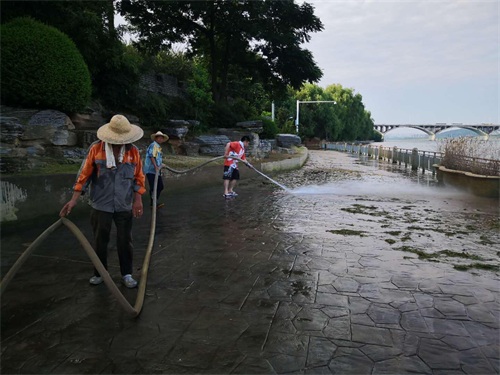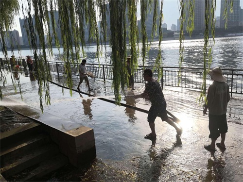 “目前水位还没有完全退出景区的游步道,但80%的游步道已经退水了。”橘子洲景区管理处办公室副主任贺婷介绍,随着水位下降,今天景区组织所有工作人员全力展开了清淤、消毒等工作。“洪水过后,景区洲头区域、游船码头区域等地方有很多垃圾、草等,处理起来比较费时费力,另外焰火广场的音乐喷泉那块沉积了比较厚的淤泥,清淤的工作量比较大。”她表示,为了让广大游客有更好的游园体验,景区将力争在今、明两天内完成这些区域的初步清淤、消毒工作,然后马上进行精细化清扫、处理等。