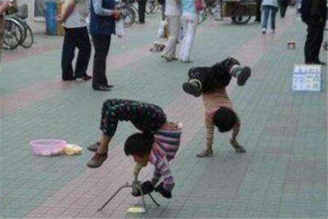 可能这已经不常见,但是在以往这是人贩子处理被拐孩子的惯用手段。他们会狠厉的逼迫孩子训练各种技能,到街上卖艺的时候,一有出错的地方,就会毫无顾忌的又打又骂。