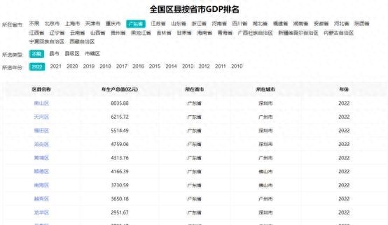 此外,福田、龙岗和另外两个区的GDP总值也在全省前五之内,都在4700至5600亿之间,这些头部区县的实力非常强大。除了广州和深圳,其他一些区县也有着令人瞩目的表现,例如佛山和惠州。佛山作为广东省重要的制造业基地,拥有众多的制造业企业和完善的产业链,其GDP一直保持着较高的增长速度。而惠州则凭借其丰富的自然资源和优越的地理位置,成为了广东省重要的经济支点之一。总的来说,广东省下辖的各区县在经济方面都展现出了出色的表现。无论是广州还是深圳,还是其他一些区县,都在各自的领域中展现出强大的实力和潜力。然而,我们也应该关注到经济发展的平衡问题,努力实现区域间的协调发展,不让发展差距进一步拉大。只有这样,广东省才能真正成为全国乃至全球的经济翘楚。在你看来,广东省各区县的经济发展如何?你认为如何实现区域间的协调发展?欢迎留下你的评论,与我们分享你的观点。