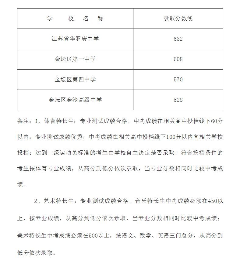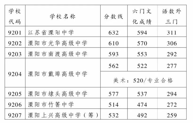 注:如考生成绩与分数线同分,先比六门文化成绩,再比语数外三门成绩。