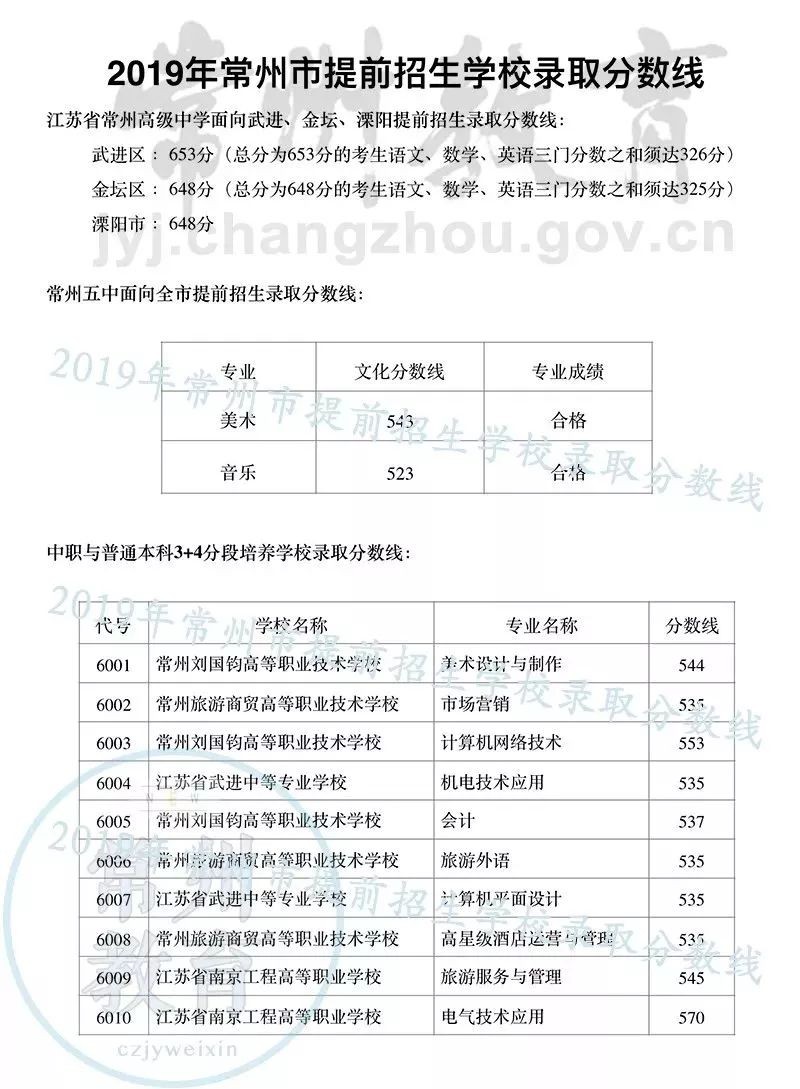 权威发布!2019年常州中考分数线出炉(含武进、金坛、溧阳)!另附8所民办学校小升初名单公布