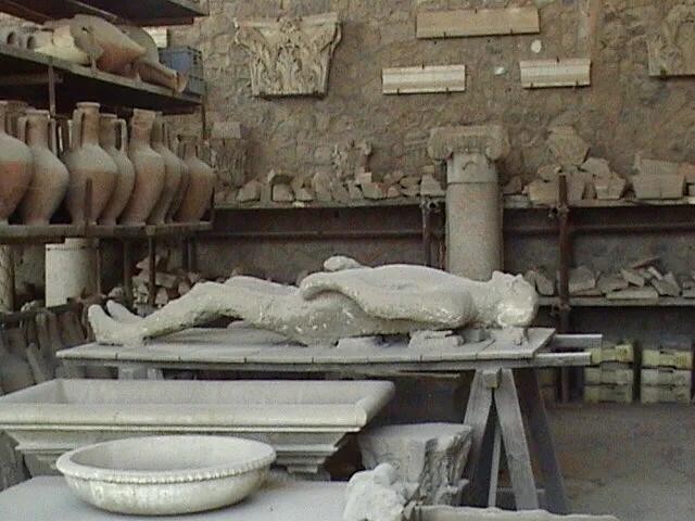 火山爆发时被埋没在火山灰下遇难市民的遗骸。