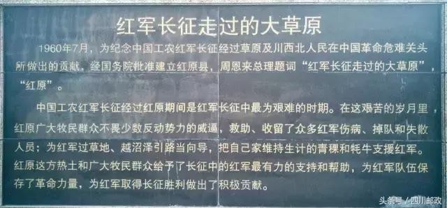 80多年前,中国工农红军三大主力在长征途中经过了红原境内高耸的雪山、广阔的草地和险恶的沼泽,历时一年零两个月左右,在全县广袤的土地上深深地烙印着红军不畏艰险、英勇奋斗的历史足迹,镌刻下了中国革命史上那段最为艰难、最为悲壮的历史征程。长征壮举丰碑铭记,红军精神在邮政传承继续……