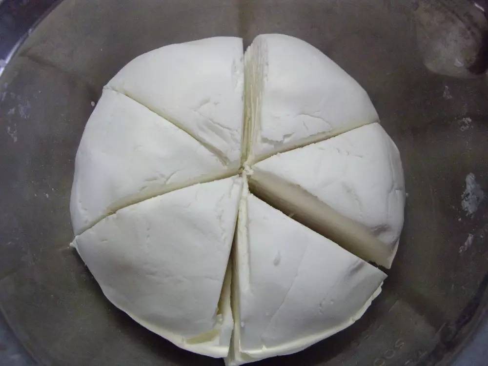 ❷用手捏成耳垂般柔软的面团,分成6等份。