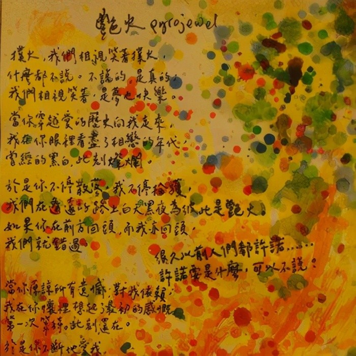 《艳火》是关于行走的歌,关于回头的不同组合,你回头我不会回头,你回头我也回头,你不回头我回头,诸如此类,贝克特式地穷举下去各种可能,双人爱情追击的背后是一种对同行的渴望,不要走在我前面,也不要走在我后面,我们彼此同行,在这首歌里,我听到一句话,那就是梦比现实要真实,而为梦付出什么都是值得的,哪怕是扑火。