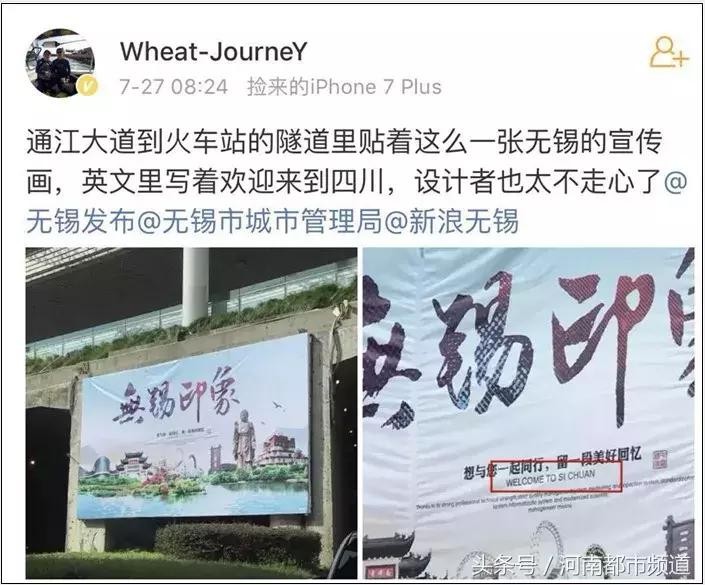 无锡宣传海报写英文“欢迎来四川”,官方回应:已拆除!