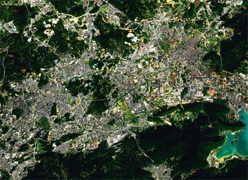 图五:惠阳与大亚湾的建成区,深颜色的是惠阳老城区,惠阳以南的建成区更多的是属于大亚湾,是房地产与产业园并存的经济技术开发区,遗憾是全国最大的石化园区——大亚湾石化基地未拍到。