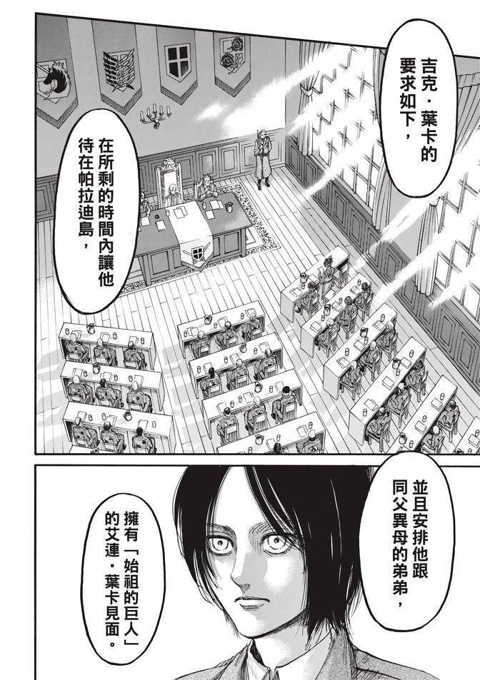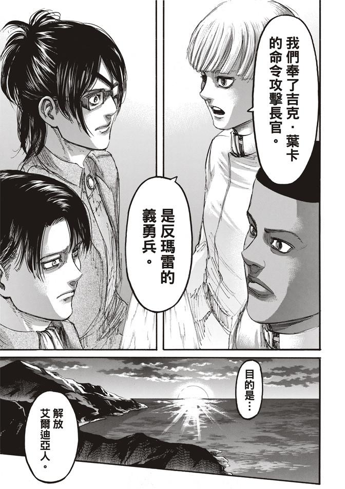 义勇军带来了岛上所需的战略物资,同时他提出了一个要求——与同父异母的艾伦见面。
