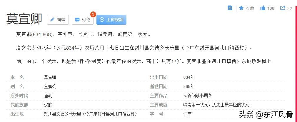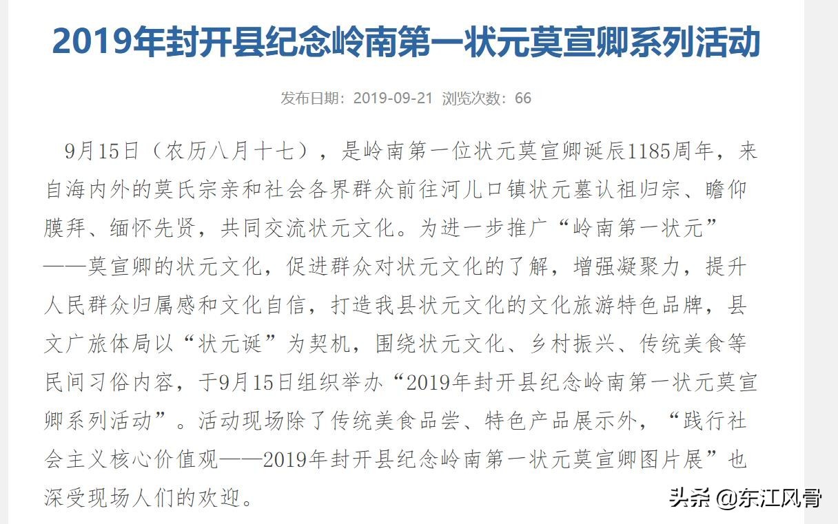 坊间,一直流传着莫宣卿是岭南第一状元,甚至政府宣传口、百度百科都将莫宣卿当成了是岭南地区第一个中状元的人。