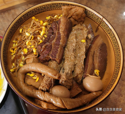 甏肉(bèng ròu)干饭是山东济宁的特色小吃,甏肉是用卤汁卤过的红烧肉,一般用的都是精品五花,经过炖煮,甏肉的肥肉吃来已经是入口即化,很入味,除了五花肉还有肉卷,狮子头、香肠、豆筋、荷包蛋、海带等附配品,小编我是更喜欢米饭上浇上汤汁,甏肉,灌馅辣椒一上,层次分明,再扒一口大米饭,别提多爽了。