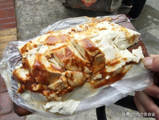 济宁热豆腐亦称“托板热豆腐”或“托板豆腐”,记得小时候的冬天,济宁路边会有卖热豆腐的手推车,给摊主阿姨一块钱五毛钱,她就熟练的用豆腐刀从冒着热蒸汽的豆腐上切下一板,铺上山椒酱,完全靠嘴吸着喝热豆腐,在当地买了我是边学边喝,最后喝得满脸都花了,你们吃过吗?