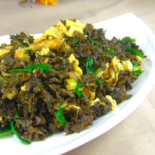 雷公屎,又叫地皮菜,我们豫南地区叫它地地乱。农村人都说雷公屎是牛屎变成的,其实它是一种藻类植物,形状和木耳相似,颜色有紫黑色和青黄色,质地软嫩,呈半透明状。这种植物营养价值高,同时还是一种中药材,《本草纲目》中就有记载,此物可以清热去火,明目益气。