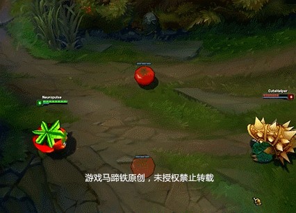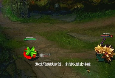 这皮肤虽然特效不多,但是西红柿的模型还是非常逼真的。想象一下当被一只西红柿在召唤师峡谷里追杀的时候...真是滑稽~