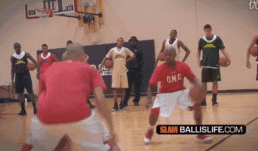双手运球突破急停跳投