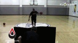 单手运球,另一只手抛起网球,趁网球在空中的间隙完成双手运球的切换