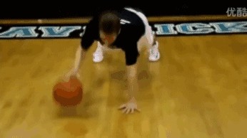 单手撑地,另一只手快速小幅度拍球,很累很见效