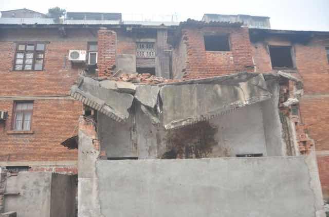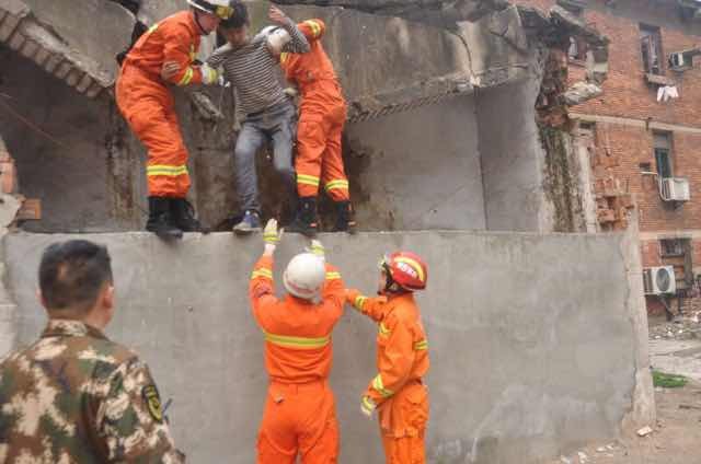 消防员赶到现场时,据现场黄石港公安分局民警介绍,男孩已经从废墟中爬出来了,只是厕所门被屋顶落下的砖头全部堵死,男孩腿部被砸伤,所以需要消防部门的紧急救助。