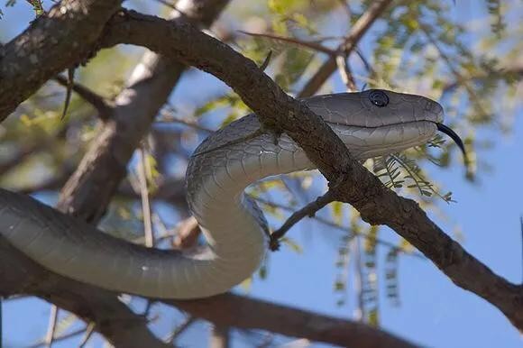 从名字上来看,大家一定以为黑曼巴蛇是黑色的,其实这种蛇的身体并不黑,发黑的其实是它的一张大嘴。黑曼巴蛇行动隐秘。当受到惊扰时会张开像眼镜蛇般的颈部,张开乌黑的大嘴以及发出“汪汪”声,像狗叫声一样。此蛇不主动攻击人,只有在发出警告无效才会攻击人。