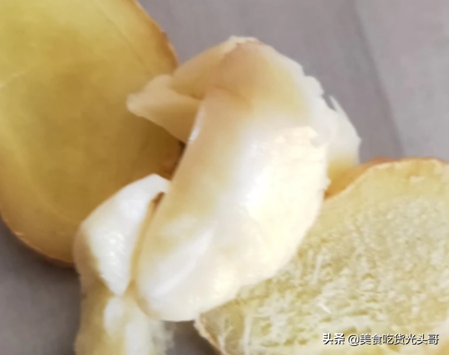准备生姜两大片,蒜瓣三瓣,生姜可以起到去腥的作用,而大蒜却能起到提鲜的效果。