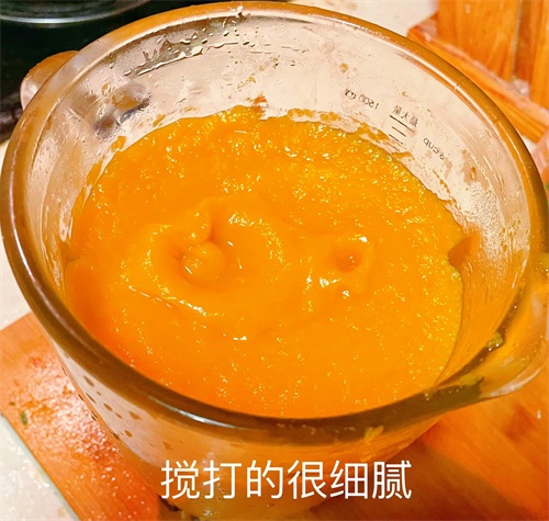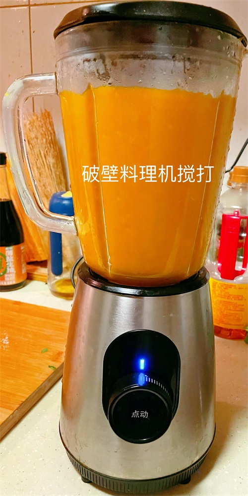 2、用破壁料理机将蒸熟的南瓜搅打细腻;