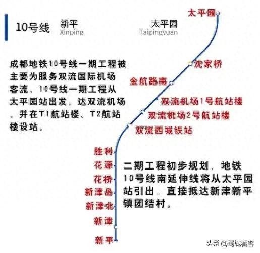 说到成都地铁10号线,经常往返双流国际机场和新津区的人们应该比较熟悉了!该线路一期工程从太平园到双流机场2航站楼,于2017年9月开通,二期工程是从双流机场到离城区更远的新津区新平,开通时间是2019年12月。