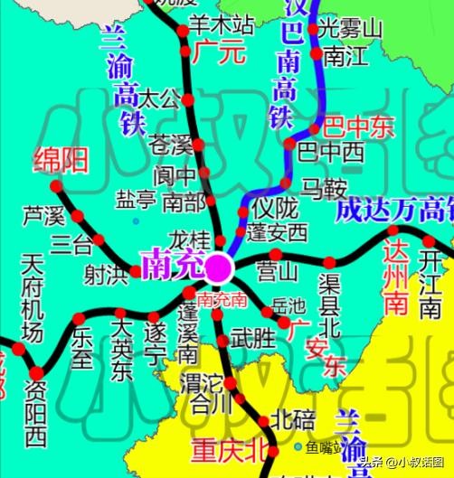 未来南充之所以可以超越遂宁、达州,做四川第二大高铁枢纽,小编觉得主要还是过境南充的高铁很多。南充目前在修的高铁有成达万高铁、巴南高铁以及南广高铁3条4个方向的高速铁路。