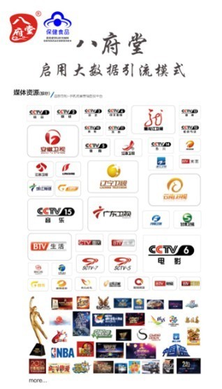 八府堂最新签约中视天脉科技有限公司签约,启用大数据引流模式!1000亿+的市场规模、春晚3200亿次的互动频率、日均1.2亿以上的人流量、15个央视频道、13个卫视频道、26个地方电视、3000多档电视节目等进行引流!引流触达人群高达12.8亿人次!