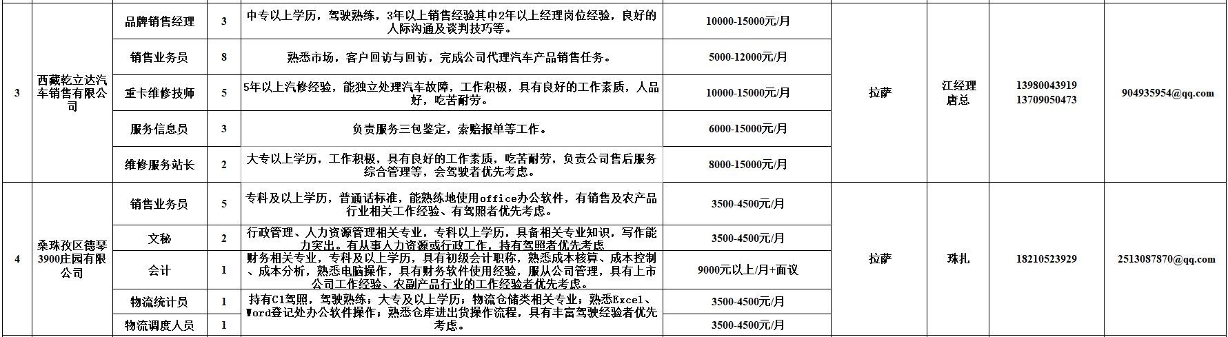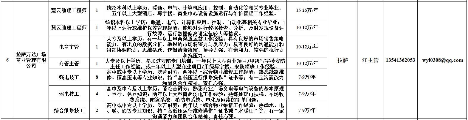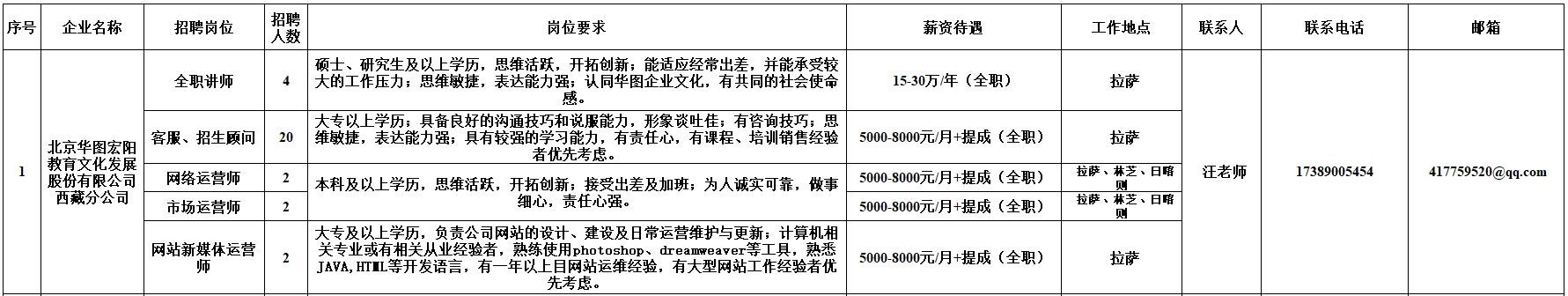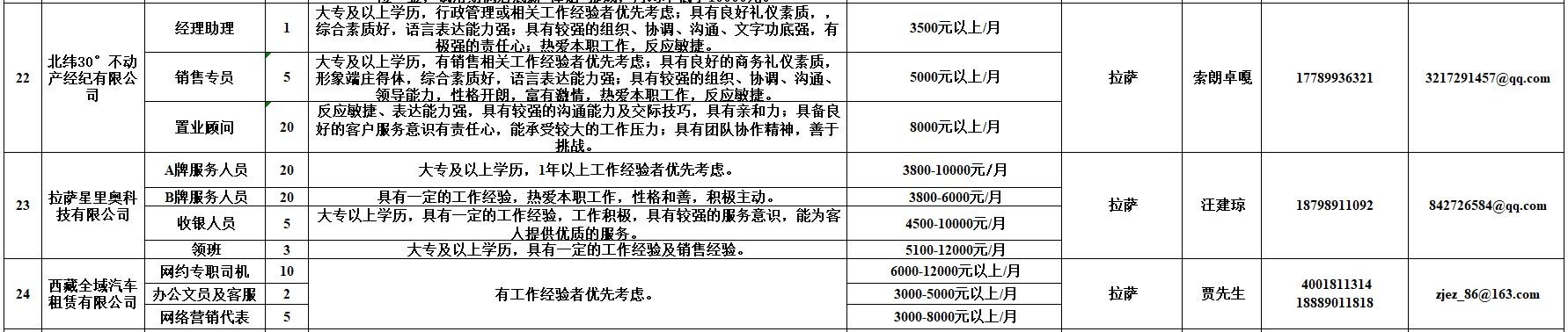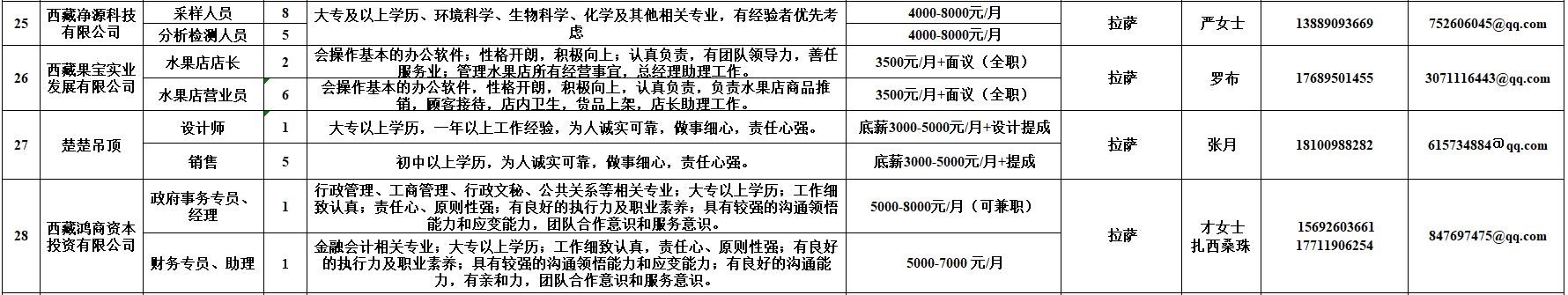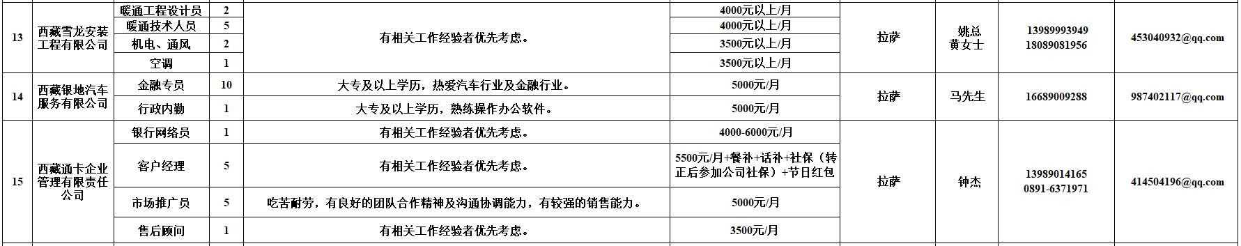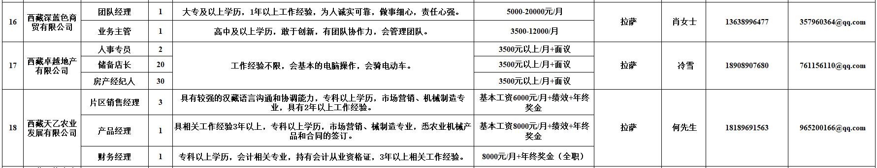 附:西藏自治区人力资源市场第十二期小型精品网络招聘岗位汇总表