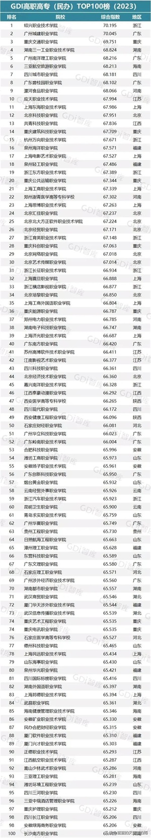 高职高专(民办)TOP100名单