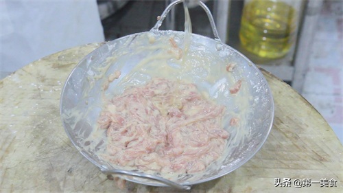 猪肉里加入食盐,料酒,生抽,用手抓匀,再加入一个蛋清,快速搅拌上劲,抓一把玉米淀粉,搅拌均匀,最后加入植物油,用植物油目的是锁住肉丝的水分,使肉丝保持滑嫩。