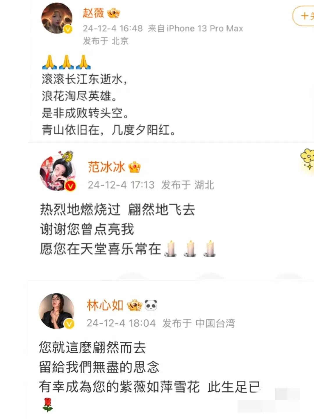 知名作家琼瑶在台北家中离世,消息一传出震惊了娱乐圈,随后众多明星都在微博上发文表示悼念。