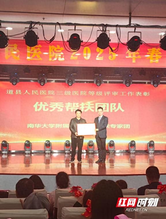 道县人民医院授予南华附一医院医联体派驻帮扶团队“帮扶贡献奖”和“三级医院等级评审优秀帮扶团队”荣誉。