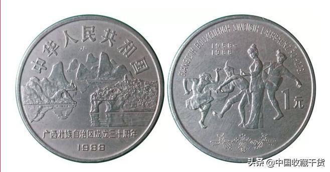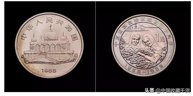 1988年发行,材质为铜镍合金,面额1元,发行量156万枚。
