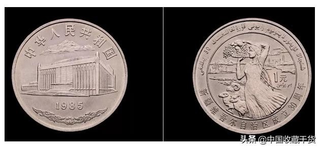 1985年发行,材质为铜镍合金,面额1元,发行量450万枚。