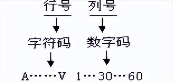 行号:从赤道算起,向两极每40为一行,用大写字母A、B、C……V表示,南北半球各分22行。